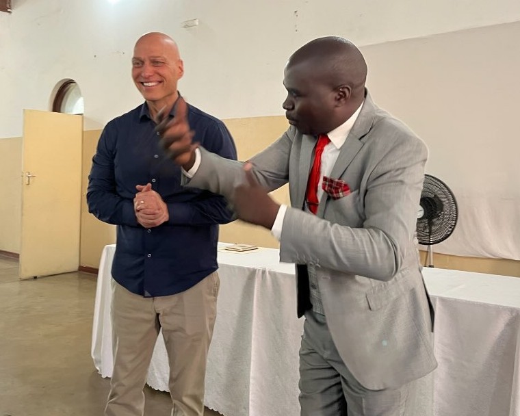 Scotty Sanders with his interpreter at the Business Leader Workshop in Blantyre, Malawi.